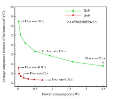 ͼ±í£ºÏàͬ¹¦ºÄÏÂÒºÀäµç³Ø°üµÄ×î¸ßζȱȷçÀäµÍ3-5¡æ